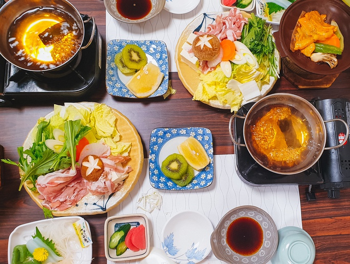 Đi Nhật thì phải hít hà nồi lẩu Shabu Shabu mới trọn vẹn. Shabu Shabu bắt nguồn từ âm thanh phát ra khi nhúng thịt vào nồi. Thành phần chính gồm thịt, rau thái mỏng, cải thảo, hành tây, cà rốt, nấm shiitake, nấm kim châm, mì udon… ăn kèm với nước sốt.